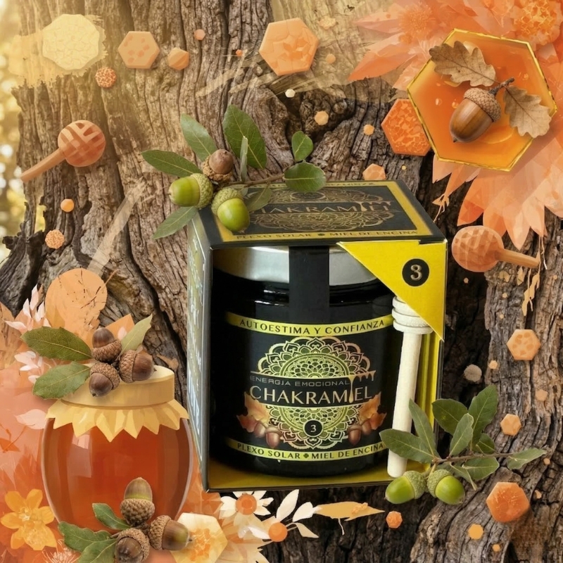 La Miel de Encina es la tercera de los siete. La del Plexo Solar. La que trabaja ese "sol" interno que brilla justo encima de tu estómago, donde reside tu voluntad, tu confianza y tu capacidad de decir "yo puedo".